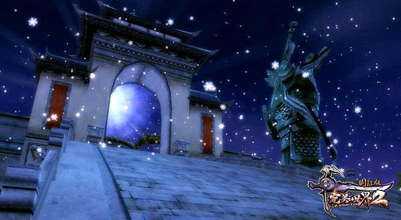 《完美国际2》中的祖龙城非常惊艳,雪白色的琉璃瓦搭配暖色古朴的建筑风格,别有一番韵味。放眼望去,祖龙城宛如雪中城堡,天空中云层密布,整个城市皑皑茫茫,大地和天空被雪混成了一色,就像隐在白雾中,朦朦胧胧。