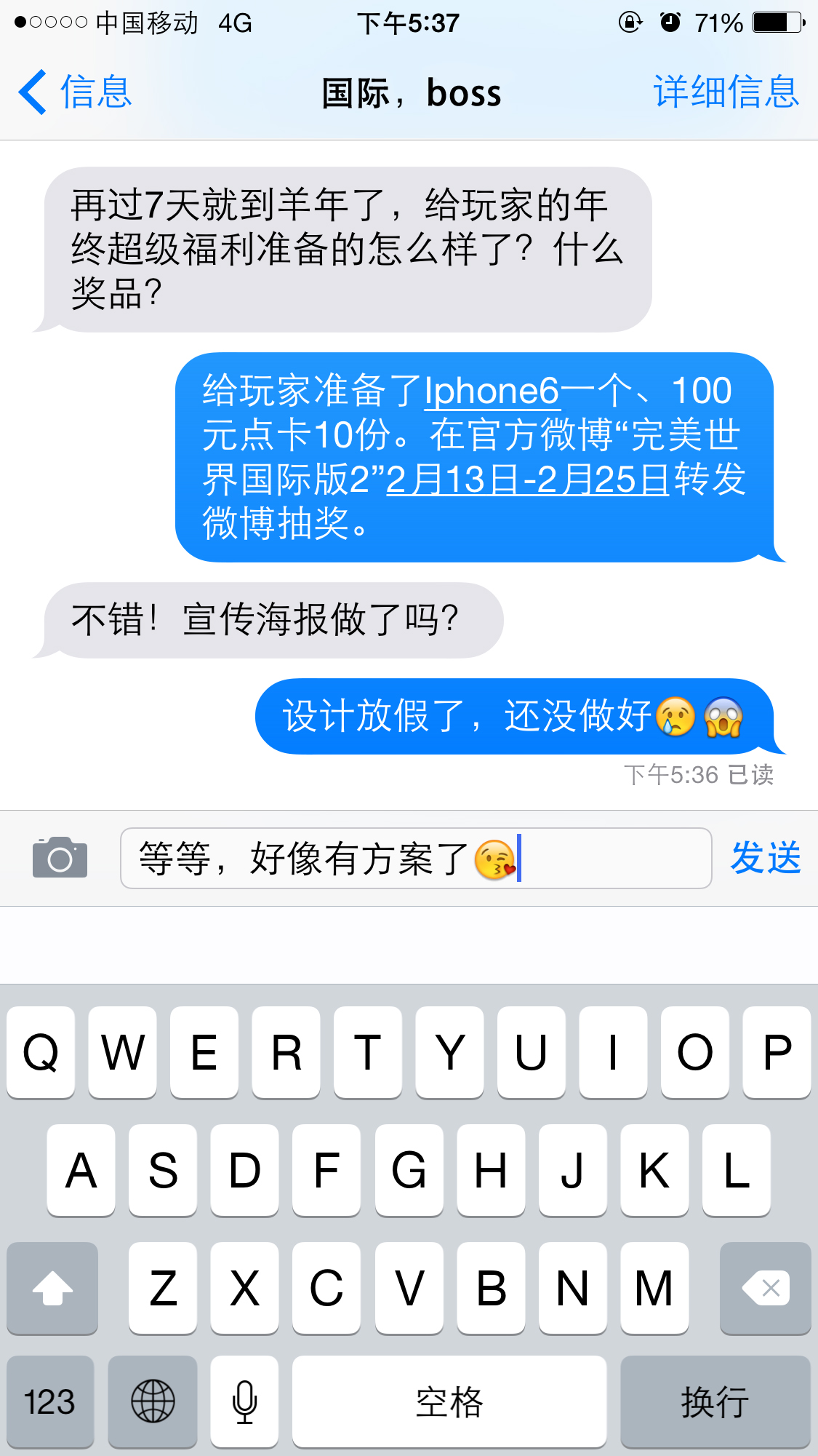 在此献上《完美国际2》新春版现代诗一首——《抽奖》: