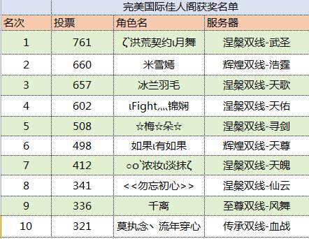北方有佳人,遗世而独立。佳人所在处,乃称佳人阁。完美国际佳人阁活动一经上线即获得大家的广泛支持,在将近一个月的展示与选择中,前十位最具人气的玩家已然诞生。
